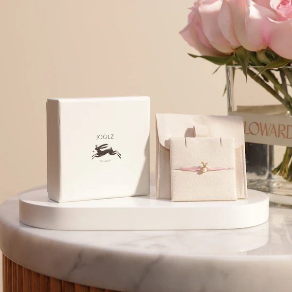 قدمي لطفلك لمسة من الأناقة مع سوار الأرنب للأطفال من جولز المصنوع من الذهب الأصفر عيار 18 والمزين بحبة لؤلؤ رقيقة. يتميز السوار بخيط وردي ناعم ليضفي راحة وأناقة في نفس الوقت. تكتمل هذه الهدية المثالية مع مزهرية زهور من اختيارك لتجعل كل مناسبة أكثر تميزاً. تصميم فريد يناسب الأطفال ويعكس الفخامة والبراءة. لا تفوتي الفرصة، اطلب الآن هذا السوار الرائع ليكون الهدية المثالية لطفلك.