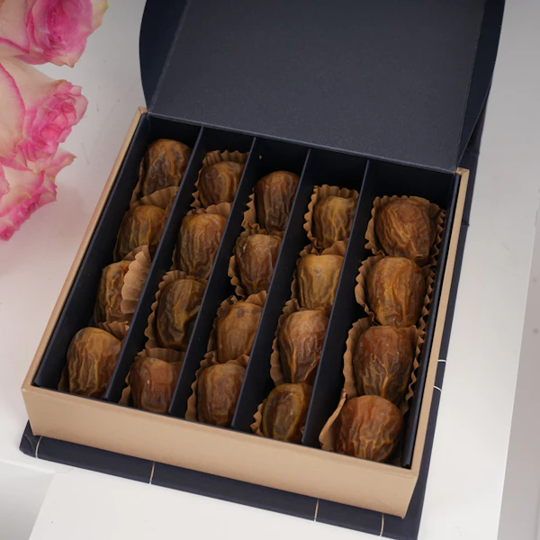 ارتقِ بفن تقديم الهدايا مع صندوق هدايا تمر سكري من نوا المميز، وهو متعة فاخرة تأسر الذوق والقلب. يحتوي هذا الكنز الذي يبلغ وزنه 250 جرامًا على أجود أنواع التمر السكري، المشهورة بمذاقها الرائع وجودتها التي لا مثيل لها. ترافق هذه البهجة 25 جوري إسبرانس، كل واحدة منها تزهر شهادة على الجمال والأناقة. سواء تم منحها لصديق عزيز، أو أحد أفراد العائلة المحبوبين، أو شخص آخر مهم، فإن هذه المجموعة مميزة، وتنقل مشاعر الحب والتقدير والإعجاب. من القضمة الأولى من الحلاوة إلى رؤية الأزهار في إزهارها الكامل، تعزز هذه الهدية الذكريات الدائمة.