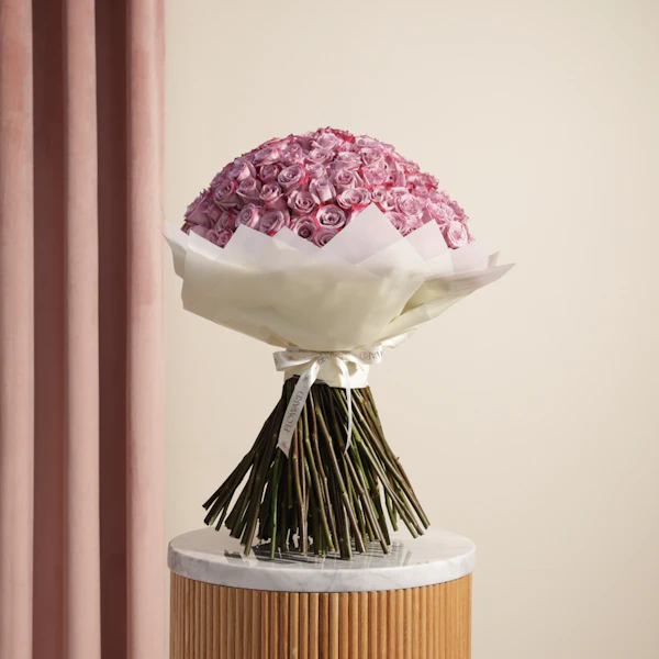 أضف لمسة من الفخامة والجمال إلى مناسباتك مع هدية قيمة تتألق بباقة 150 جوري بنفسجي الرائعة. تأتي هذه الباقة المميزة مغلفة بـ غلاف كريمي أنيق، مما يضيف لمسة من الرقي والجاذبية لكل لحظة. الجوري البنفسجي هو رمز للأناقة والحب، وهذه الباقة توفر تجربة بصرية رائعة تجمع بين الألوان الزاهية والتنسيق المثالي. اختر أحلى هدية الآن واجعل كل مناسبة أكثر تميزًا وجمالًا، مع باقة من الجوري البنفسجي التي تعكس ذوقك الرفيع وتعبر عن مشاعرك بأبهى صورة. احتفل بطريقة استثنائية وقدم هدية تظل في الذاكرة طويلاً.