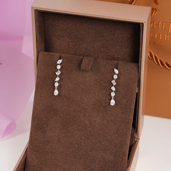 - أقراط اذن الماس من مجوهرات الكوهجي، مصمم بألماس قصة البير( قصة الدمعة او الكمثرى) وقصة الماركيز مع الذهب الوردي بوزن 4.22 غرام.
