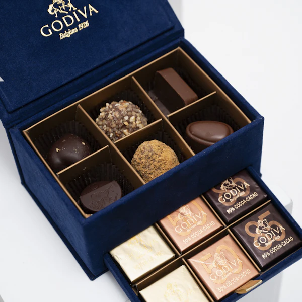 نكهات الشوكولاتة: 6 قطع من البرالين والترافل و12 قطعة من جوديفا كاريه.
