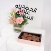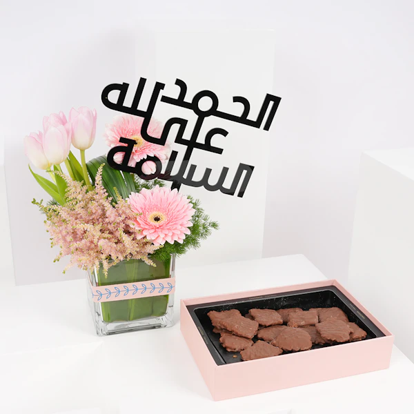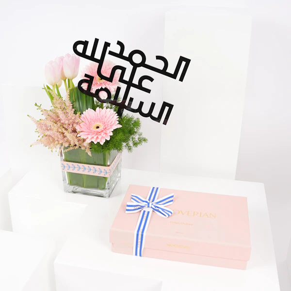 هدية للحمد بسلامة من تحب وتمني الشفاء العاجل لهم. تتضمن هذه الهدية اللطيفة صندوق كريب دولسي من هنوفيرين، وهي حلوى لذيذة مصنوعة من طبقات من الكريب الرقيق المحشو بكسترد الفانيليا ومغلف بالشوكولاتة. تشمل الهدية أيضًا مزهرية زجاجية مربعة مليئة بالزهور الوردية الرقيقة، المعروفة بجمالها، وتعطي شعور بالأمل والشفاء. من المؤكد أن هذه الهدية ستضفي إشراقة على يوم من تحب وتهون عليهم.