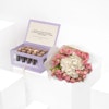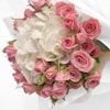 - باقة أزهار ناعمة تحتوي على زهرة الهيدرينجا البيضاء مع 10 من ورد الجوري الصغير الوردي.