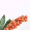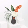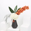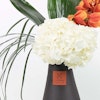 فازه تحتوي على زهور الهايدرنجا ذات اللون الابيض والسيمبيديوم ذو اللون البرتقالي