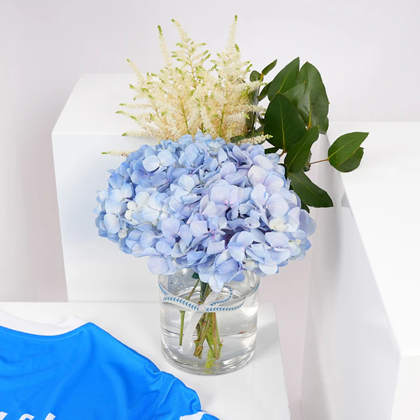نداء لجميع مشجعي الهلال! تجمع مجموعتنا الحصرية بين أفضل مظاهر الفخر بالفريق والأناقة. أكشف عن دعمكم اللازم مع تيشيرت الهلال نيمار فئة الجماهير 23/24 ، المصمم لكل من الرجال والنساء. هذه القطعة الأنيقة أكثر من ملابس، إنها رمز لتفانيكم في الفريق. ولمكملة هذا الرمز للشغف، قمنا بتضمين تكوين رائع من زهرة الهيدرانجيا الزرقاء وزهور الأستلب الأبيض في مزهرية زجاجية نحيفة. ارفعوا من احتفالاتكم أو عبروا عن حبكم للهلال بهذا الدمج المتناغم من روح الفريق وسحر الزهور. إنه الهدية المثالية لعشاق الهلال في حياتكم.