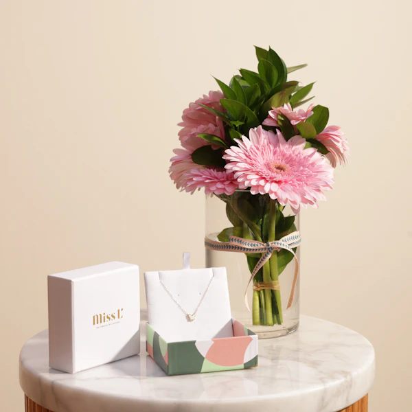 تألقي بإطلالة راقية مع قلادة ذهب من مس ال من لازوردي، المصممة بعناية لتناسب ذوقك الفريد وتضفي لمسة من الفخامة على أي مناسبة. هذه القلادة الفاخرة هي تجسيد للأناقة الخالدة، مما يجعلها الهدية المثالية لتعبيرك عن حبك واهتمامك بالشخص المميز في حياتك. ولتعزيز جمال هذه الهدية، تأتي القلادة برفقة مزهرية من الزهور المفضلة لك، تضيف لمسة من الجمال الطبيعي وتجعل الهدية تفيض بالحب والرقة. اجعل مناسبتك الخاصة لا تُنسى مع هذه الهدية الرائعة التي تجمع بين جمال المجوهرات وسحر الطبيعة. اطلب الآن هدايا مجوهرات فاخرة للمناسبات الخاصة واستمتع بأناقة لا تُضاهى.