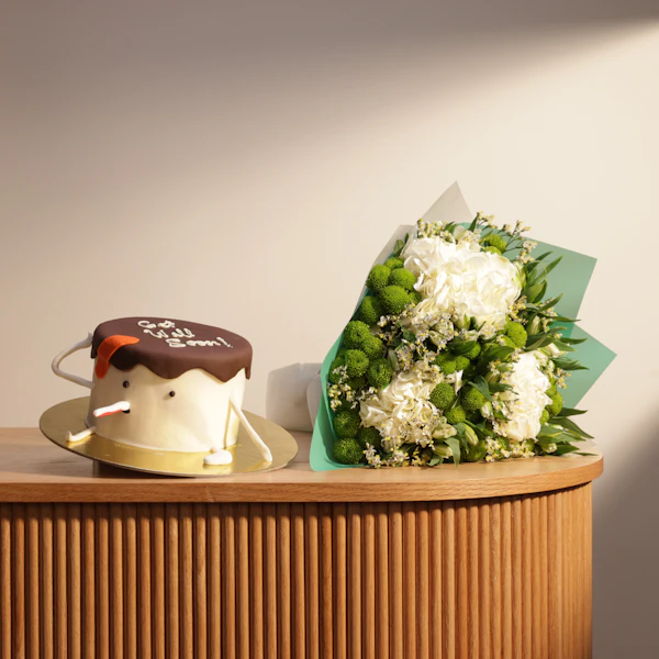 كيك تمنيات الشفاء العاجل من هلن بيكري | زهور الاناقة