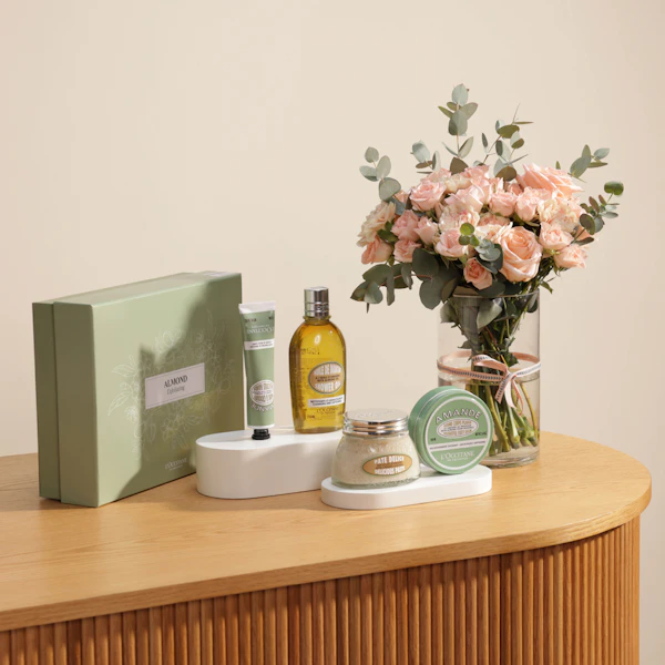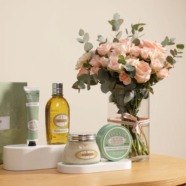 الأسعار شاملة الضرائبمجموعة هدايا اللوز المقشرة للجسم من لوكسيتان | مزهرية الزهور الدافئة