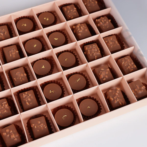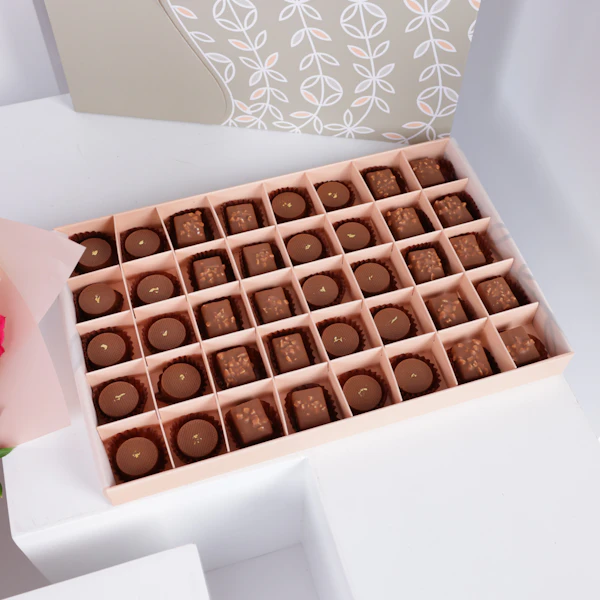 - علبة شوكولاتة من فلاورد مشكلة: 40 قطعة، نكهة الكراميل و الشيكولاتة المقرمشة