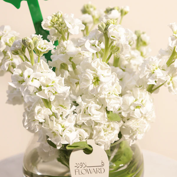 احتفل بموسم اليوم الوطني السعودي بطريقة استثنائية مع تنسيق فاخر من الزهور البيضاء الجميلة. اهدي أحبائك باقة مميزة من الماتيولا البيضاء في مزهرية زجاجية دائرية أنيقة، مزينة بعود تزيين أخضر يحمل شعار اليوم الوطني "نحلم ونحقق". زهور الماتيولا البيضاء تعبر عن النقاء والرقي، مما يجعلها الهدية المثالية للاحتفال بهذه المناسبة الوطنية. تضيف المزهرية الزجاجية الدائرية لمسة عصرية تضفي على أي مكان جاذبية وأناقة. سواء كنت ترغب في تكريم شخص عزيز أو الاحتفال بتجديد حبك وولائك لوطننا المعطاء، فإن هذا التنسيق الفاخر سيكون ذكرى مميزة تلامس القلوب.