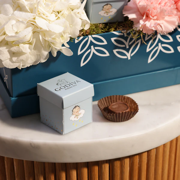 الأسعار شاملة الضرائبصندوق شوكولاته ازرق للبيبي من جوديڤا | زهور البهجة