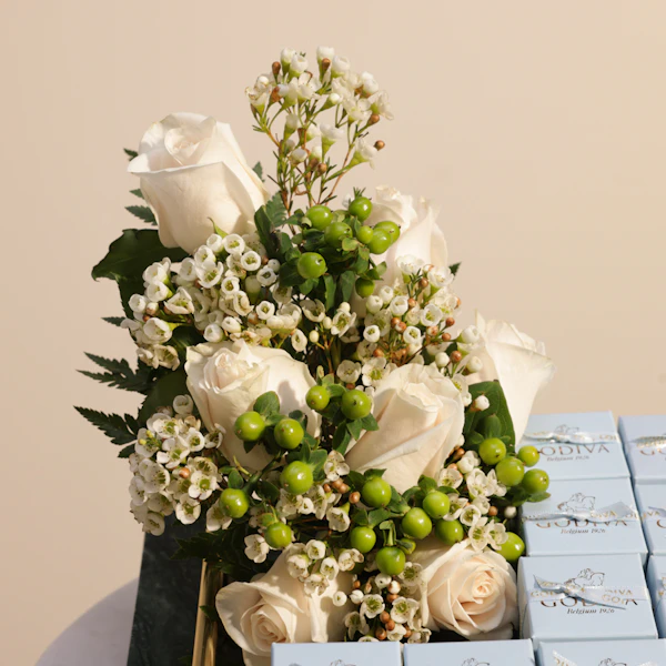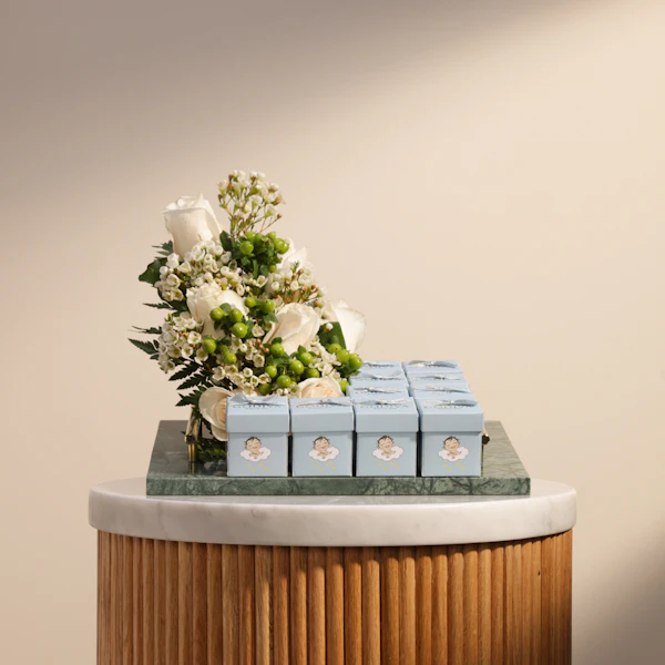 احتفل بقدوم المولود الجديد بأناقة وذوق رفيع مع توزيعات شوكولاتة المولود الجديد صبي من جوديفا. تتضمن كل توزيعة 10 علب من الشوكولاتة الفاخرة، مقترنة بجوري أبيض يضفي لمسة من الجمال والبراءة. تأتي العلب المصنوعة بدقة في صينية أنيقة بلون هيبركوم اخضر، مما يعزز من أناقة وجاذبية الهدية. شوكولاتة جوديفا تتميز بجودتها العالية ونكهاتها الرائعة، مما يجعلها اختياراً مثالياً للاحتفال بمناسبة استثنائية مثل قدوم المولود الجديد. استمتع بتجربة لذيذة ومميزة تجمع بين الفخامة والجمال، مع ضمان أن كل قطعة من الشوكولاتة تعكس اهتمام جوديفا الدائم بأعلى معايير الجودة والتفاصيل الدقيقة.