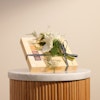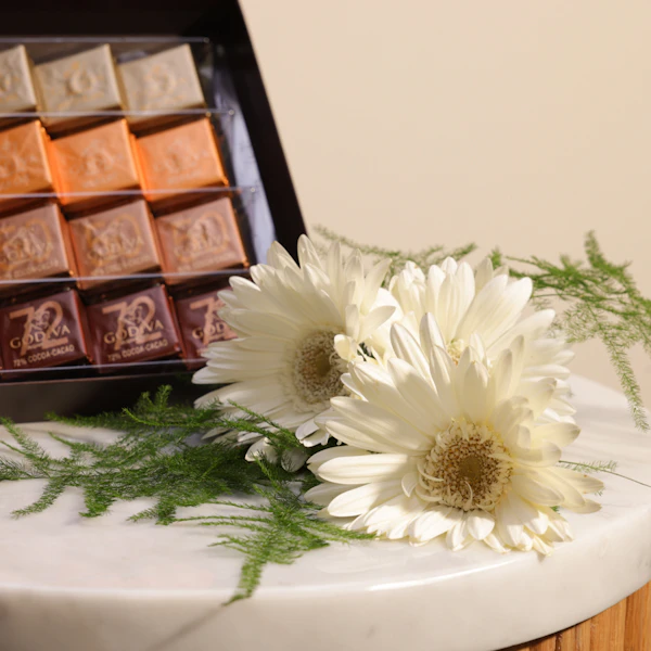 أضف لمسة من الفخامة إلى يومك مع هدية صندوق كاريه كلاسيك من جوديفا مزين بزهور الجرباره البيضاء. تحتوي هذه الهدية على شوكولاتة جوديفا الفاخرة التي تذوب في الفم وتغمر الحواس بنكهتها الغنية. تزينها زهور الجرباره البيضاء النقية، التي تضيف لمسة من الأناقة والرقي بجمالها الطبيعي. سواء كنت تحتفل بمناسبة خاصة أو ترغب في إظهار حبك واهتمامك لشخص مميز، هذه الهدية تجمع بين الطعم الرائع والجمال الساحر. إنها تعبير راقٍ عن التقدير والاهتمام، وتعد هدية مثالية لإضفاء السعادة والبهجة على أي مناسبة. فاجئ أحبائك بهذه المجموعة المذهلة التي تجمع بين الشوكولاتة الفاخرة وجمال الزهور الطبيعي.