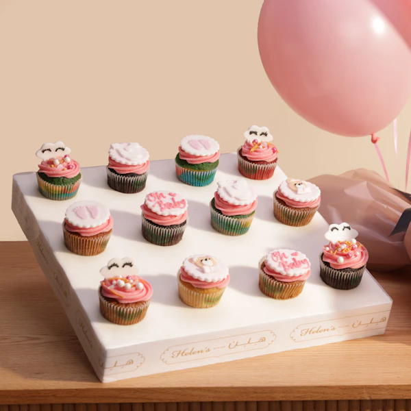 كب كيك المولودة الجديدة من هلن بيكري | باقة زهور الاحتفال