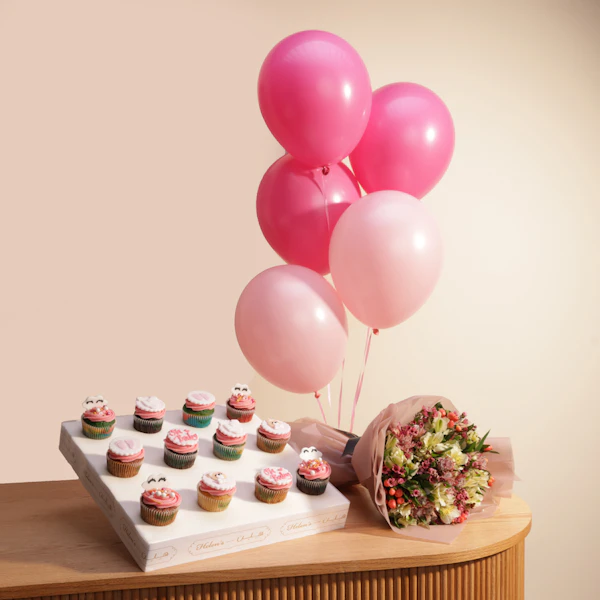 احتفل بقدوم المولودة الجديدة بطريقة مميزة ومبهجة مع كب كيك من هلن بيكري، حيث نقدم لك 12 قطعة من الكب كيك بنكهات متعددة ومحببة تضفي الفرح واللذة على هذه المناسبة السعيدة. كل قطعة مصنوعة بعناية لتكون مثالية ومتقنة، ما يجعلها الاختيار الأمثل للترحيب بالمولودة الجديدة. تأتي هذه الهدية المبهجة مع باقة زهور ناعمة وبالونات ملونة تتناسب تمامًا مع روح الاحتفال، مما يجعلها الإضافة المثالية لأي جمعة احتفالية. اطلب أحلى هدية الآن وشارك فرحة العائلة بوصول عضو جديد بأجمل وألذ الطرق!