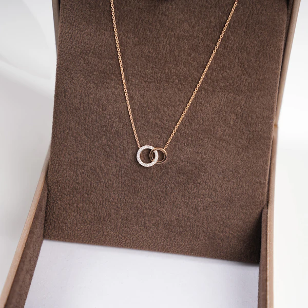 - قلادة دوائر الألماس والذهب من الكوهجي، روز جولد ذهب عيار 18 قيراط.