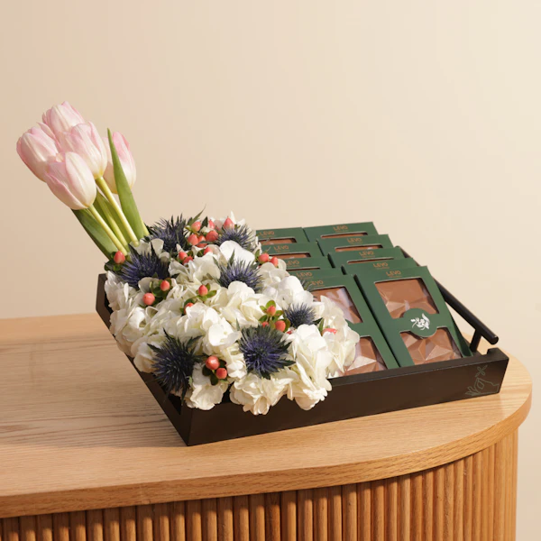 صينية شوكولاتة اليوم الوطني من ليفو | حيوية الزهور