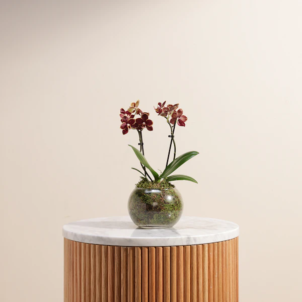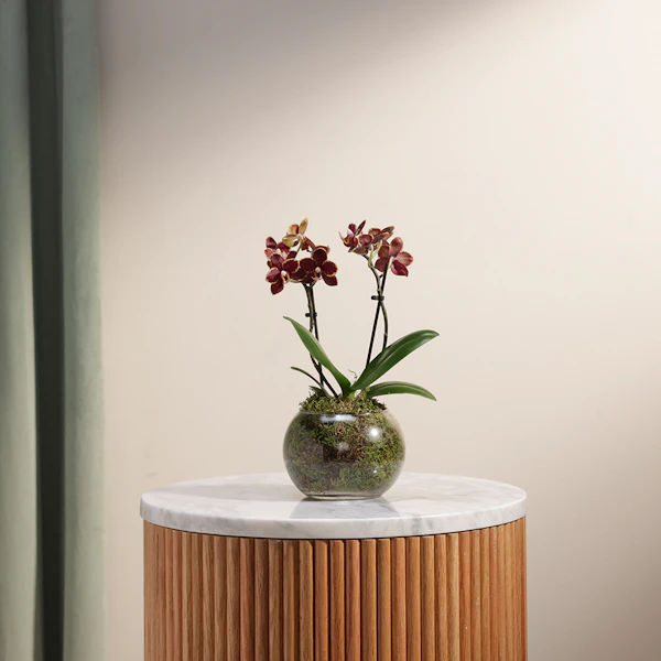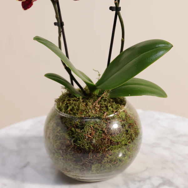 ميني بريتي اوركيد وردي مع فازه زجاجية