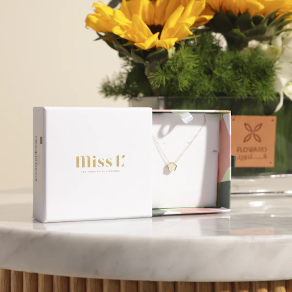 فاجئ الأميرة الصغيرة في حياتك بسلسلة رائعة من مس ال من لازوردي، المصنوعة من الذهب الأصفر عيار 18. صممت هذه السلسلة لتكون مثالية للأميرات الصغيرات اللواتي يعشقن الأناقة والجمال، حيث تأتي مع دلاية رقيقة على شكل فراشة أو زهرة، مما يضفي لمسة ساحرة على إطلالة طفلتك ويمنحها شعورًا بالتميز. ولجعل الهدية أكثر تميزًا، تُقدّم السلسلة مع فازة تحتوي على زهورها المفضلة. اختار الآن واجعل لحظاتها لا تُنسى وعبّر عن حبك بأناقة وفخامة مع هذه الهدية المثالية.
