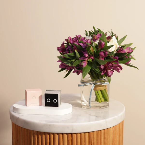 اختر أقراطًا فاخرة من باندورا لتضيف لمسة من الأناقة إلى إطلالتك اليومية. استمتع بجودة التصميم والحرفية الرفيعة التي تشتهر بها باندورا، مما يجعلها الهدية المثالية لمن تحب. وأكمل هذه الهدية بمزهرية زهور من اختيارك تضفي جمالًا طبيعيًا ورونقًا على أي مكان. اجعل هذه اللحظة مميزة مع هذه الهدية الرائعة. اطلب الآن لتحصل على هذه التجربة الفاخرة.