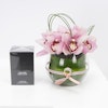 ر.س1445عطر برائحة الجلد للنساء والرجال، تم إصداره عام 2018. تركيبته العطرية غنية بالهيل بمقدمة العطر، الجلد وزهر الفل بقلب العطر مع العنبر، الباتشولي والطحالب بقاعدة العطر. ولجعل هذا العطر المميز مثالي كهدية انيقة، قمنا بتنسيق فازة أزهار ناعمة تتكون من ثمانية أزهار من زهرة السمبيديم الوردية الرقيقة مع أوراق الدراسينا الخضراء المنعشة.