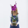 الأوركيد الأرجواني في وعاء مربعة هو مزيج جميل من الطبيعة والتصميم الحديث. تخلق الأزهار النابضة بالحياة في مزهرية أنيقة قطعة مركزية مذهلة ومتطورة لأي غرفة. مثالي لأولئك الذين يقدرون الطبيعة والأسلوب المعاصر. أرسل نبتة الأوركيد الجميلة إلى الشخص الذي تفكر فيه.