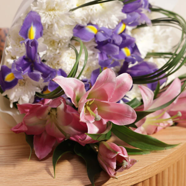ر.س695هذه الهدية المختارة بعناية من سويت اتيليه هى الطريقة المثالية لإحياء ذكرى إنجاز عظيم. نقدم لكم الكيك ذات الحجم الكبير، والمناسبة لـ ١٢ إلى ١٦ شخصاً، تشكيلة رائعة من النكهات. استمتع بلذة الفانيليا، ومتعة الكراميل المالح، والملمس المقرمش الذي لا يُقاوم للكيك، وكلها مجتمعة لتخلق تجربة لا تُنسى. ولإكمال الكيك اللذيذة، تأتي هذه الهدية برفقة باقة زهور مذهلة. تضم الباقة زهور السوسن الزرقاء الزاهية التي ترمز إلى الأمل والحكمة، والأقحوان الأبيض النقي الذي يدوم سعادته، والليليوم الوردية الرقيقة التي تمثل بدايات جديدة، لتضيف هذه الباقة لمسة من الأناقة وتعبر عن تهانيك بهذه المناسبة المثالية.