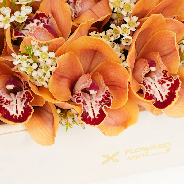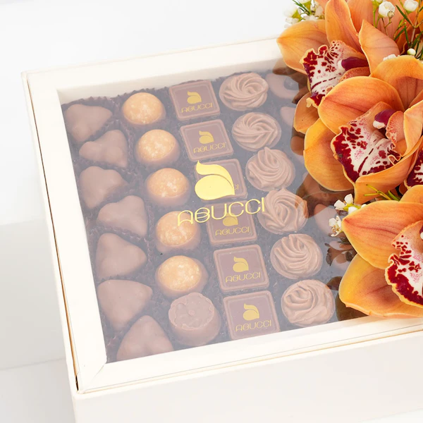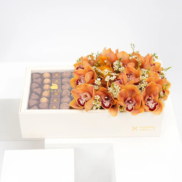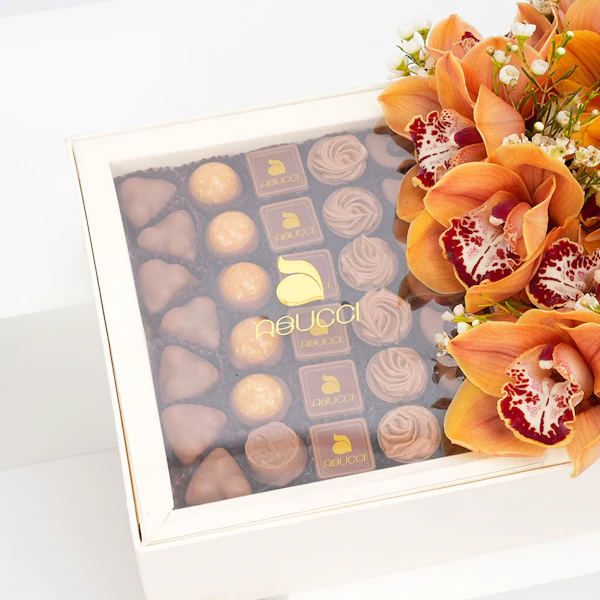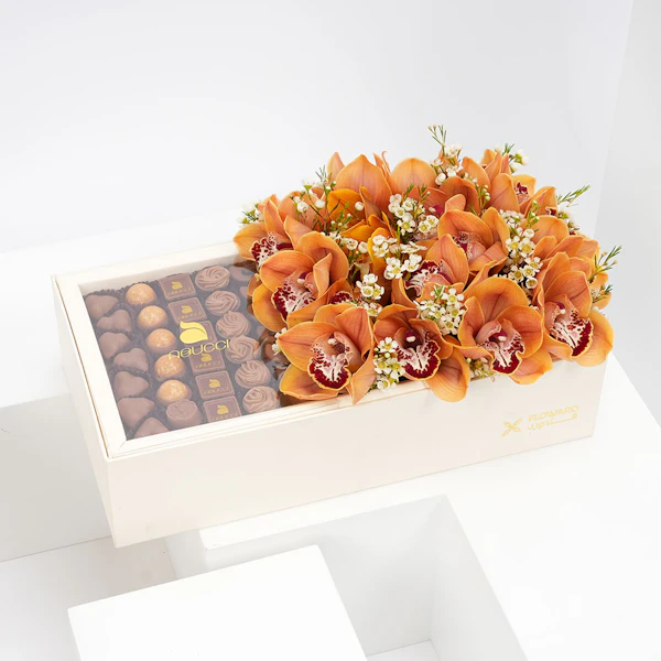 زهور الاوركيد البرتقالية مع شوكولاتة ابوتشي