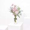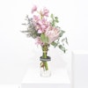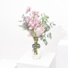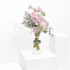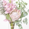 تنسيق مزهرية يحتوي على بوريتيا زهري اللون مع سمبيديوم زهري اللون و لافندر البحري من ياسر