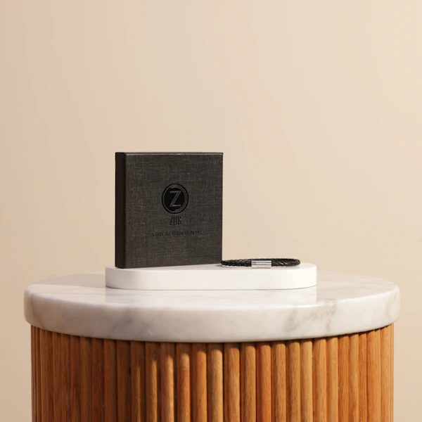 اجعل إطلالتك أكثر تميزًا مع سوار زوس الأسود الفردي، المصنوع من جلد طبيعي فاخر وفولاذ مقاوم للصدأ. يجمع هذا السوار بين الأناقة والراحة بفضل تصميمه البسيط الذي يعكس الرقي والفخامة. يجعلك هذا السوار تتألق في جميع المناسبات بفضل لمسته الأنيقة والمصممة لتدوم طويلاً. اختر سوار زوس لتضيف لمسة من الفخامة والتألق إلى مظهرك.
