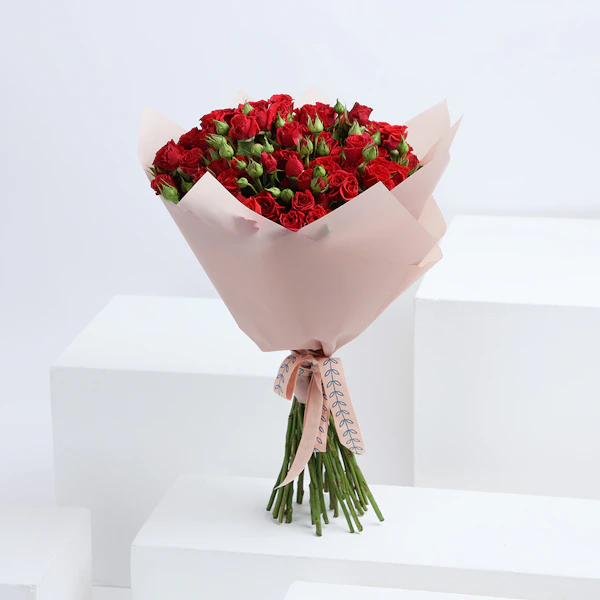 • A bouquet of 30 red baby roses is a charming and delicate way to express your love and affection. The mini size of the roses gives the bouquet a sweet and innocent look, making it perfect for expressing your love to someone special. The deep red color of the roses symbolizes passion and strong romantic feelings.
