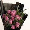 Make your loved ones day special this year with the unique flower bouquet we offer. This bouquet consists of purple roses and white Veronica with a charming touch of purple wax flower, elegantly packaged in a luxurious black wrapper. Choose this bouquet to be your gift for your loved ones, as it is a unique expression of elegance and beauty that will bring them joy and happiness on this special occasion. Order now and make your loved people day unforgettable moments filled with the scent of joy and love.