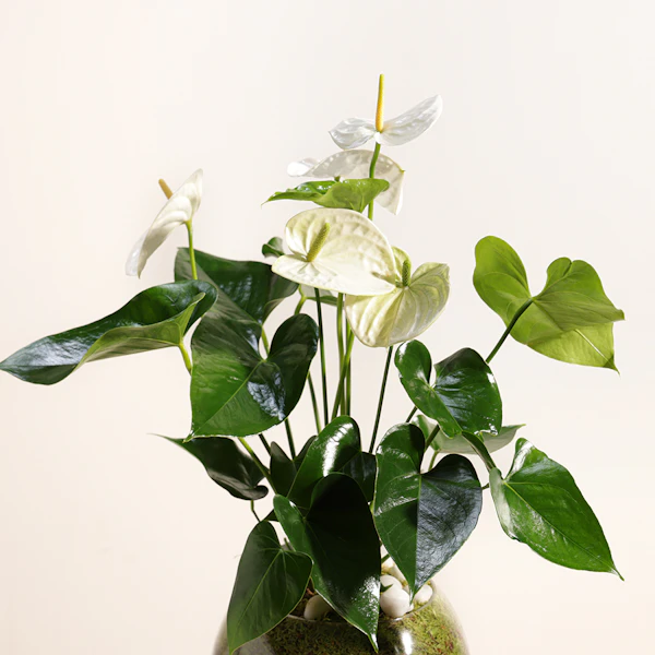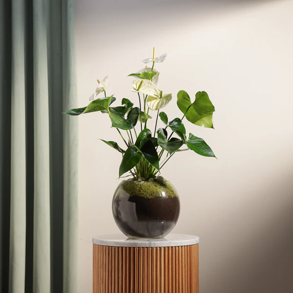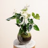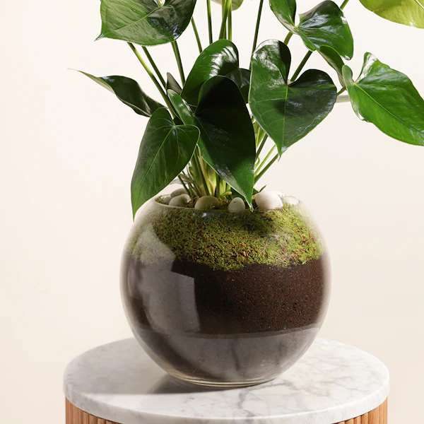The Anthurium Montana is a stunning tropical plant with glossy green leaves and vibrant White flowers that bloom year-round. It's a symbol of love and admiration, making it the perfect gift for your loved one. This Anthurium Montana comes in a beautiful Glass pot that adds a touch of elegance to any home decor. The pot's unique design ensures that it will be a cherished keepsake long after the plant has outgrown it. This thoughtful and beautiful gift is sure to bring joy and happiness to your loved one's life for years to come.