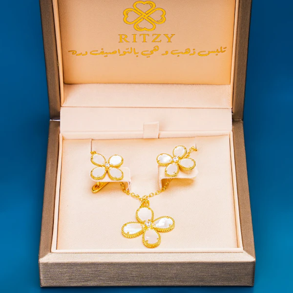 AED375Gifting the Ritzy Bloom Pearl Set, featuring 18K silver-plated jewelry adorned with pearls and zircon stones, is a testament to timeless beauty and sophistication. This set, including a necklace and earrings, exudes elegance and charm, making it a perfect gift for commemorating special occasions with grace and luxury.