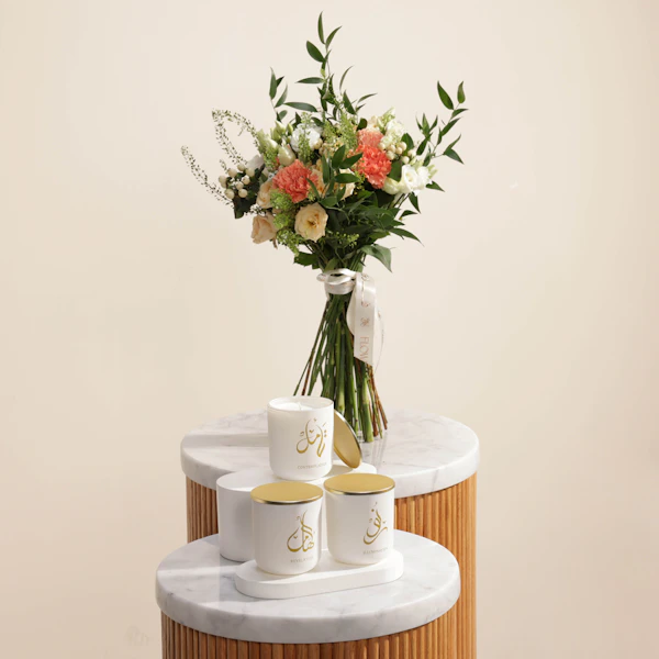 AED725The combination of a Light of Sakina candle, chosen for its soothing ambiance, and a bouquet of handpicked flowers creates an atmosphere of warmth and tranquility. This gift radiates thoughtfulness and care, offering a sensory experience that uplifts spirits and fosters a sense of serenity and appreciation.
