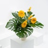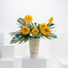 AED280Magical and exquisite, this radiant arrangement of Gerbera will take you on an enchanting journey as soon as you lay eyes on it. In a sleek metal vase, six yellow gerbera flowers stand like rays of sunshine, a burst of vibrant energy captured in a compact arrangement. The petals exude a cheerful warmth against the cool backdrop of the metallic container, creating a visual harmony. This minimalistic yet lively ensemble effortlessly elevates any space, proving that a small cluster of yellow blooms in a metal vessel can be a radiant focal point, bringing joy and a touch of contemporary elegance to the surroundings.