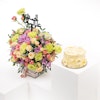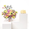 AED535Make moments of recovery warmer and more beautiful with Floward's Vanilla Cake, perfect for a group of 4-6 people. This wonderful gift comes with an arrangement of peach baby roses, pink baby roses, pink chrysanthemums, and green carnations carefully placed in a square glass vase. Additionally, adorning the gift is a sign with "Get Well Soon" wishes written in Arabic, expressing feelings of support and speedy recovery in a lovely and distinctive way.