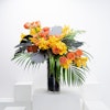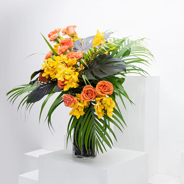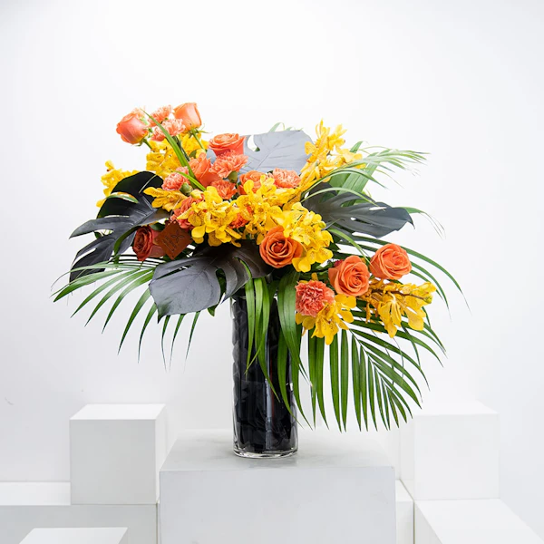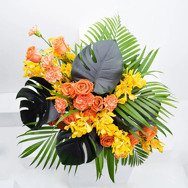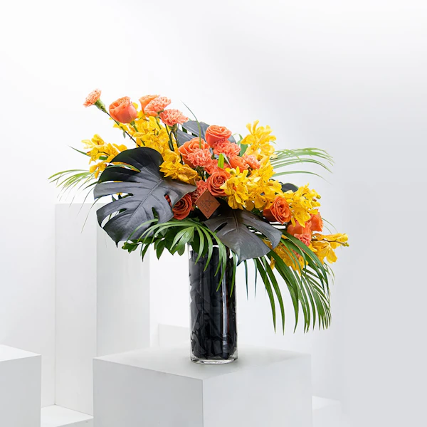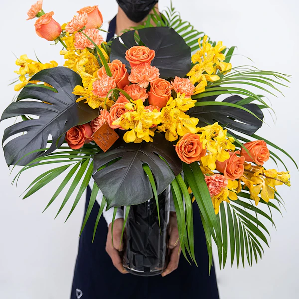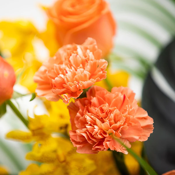 Have some scary fun this season with this bundle of roses & carnation with baby orchids in a glass vase.