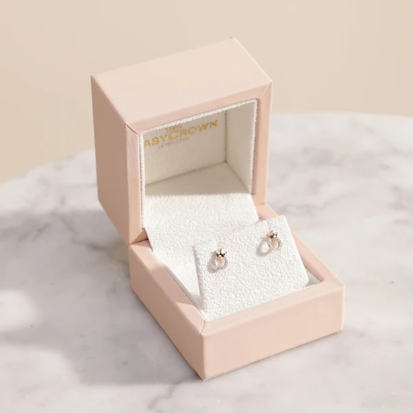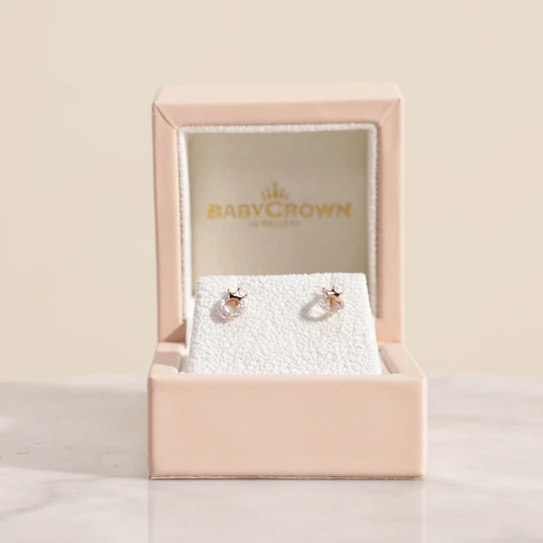 AED1270The Baby Crown Gold Crown Earrings are a charming and elegant gift for a little one. Crafted from 18k gold, each earring weighs just 1 gram, offering a delicate and secure fit for tiny ears. The sweet crown design adds a touch of royalty and sophistication, making these earrings a timeless keepsake to cherish as they grow.