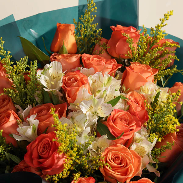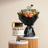 AED775Celebrate your graduate's golden moment with Floward's Golden Graduation Vanilla Cake, a decadent masterpiece filled with luscious strawberry paste and white chocolate chips, adorned with shimmering gold dust for an extra touch of opulence. Accompanied by a vibrant bouquet featuring the symbolic orange roses, elegant white alstroemeria, and cheerful solidago, all wrapped in sophisticated dark teal packaging, this gift is the perfect way to honor their achievements in style and sweetness.