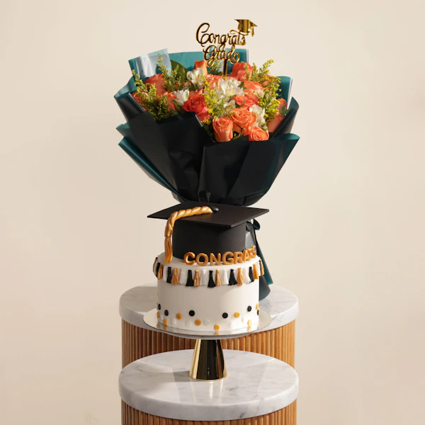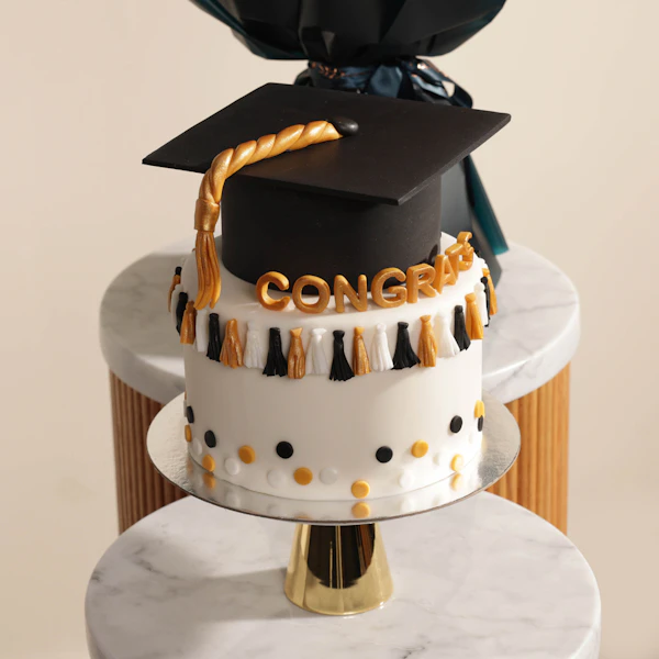 All prices include taxGolden Graduation Cake | Rose Bouquet