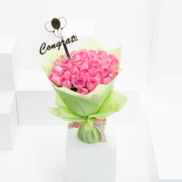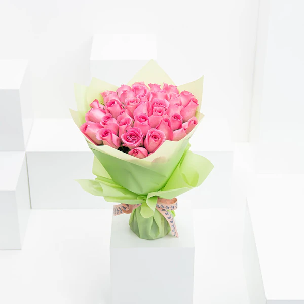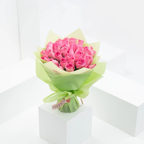 A bouquet of 35 pink roses is a beautiful way to express your love and affection for your loved ones. The color pink symbolizes love, grace, and sweetness, making it a perfect choice for expressing your feelings towards someone special. This bouquet is a timeless and romantic gesture that will surely touch the heart of the recipient and show them just how much they mean to you.