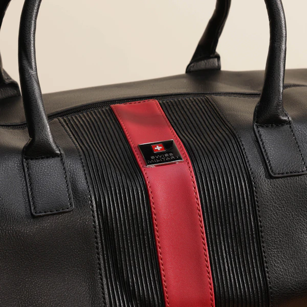 Empower the explorer within with this stunning Hasal Duffle Bag by Swiss Military! Crafted from luxurious black leather with bold red accents, this bag is as stylish as it is functional. The spacious interior offers ample room for all your travel essentials, while the comfortable straps ensure a smooth journey. This sophisticated duffle bag is the perfect companion for weekend getaways, business trips, or even a night at the gym.