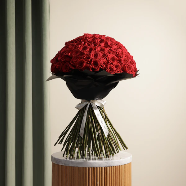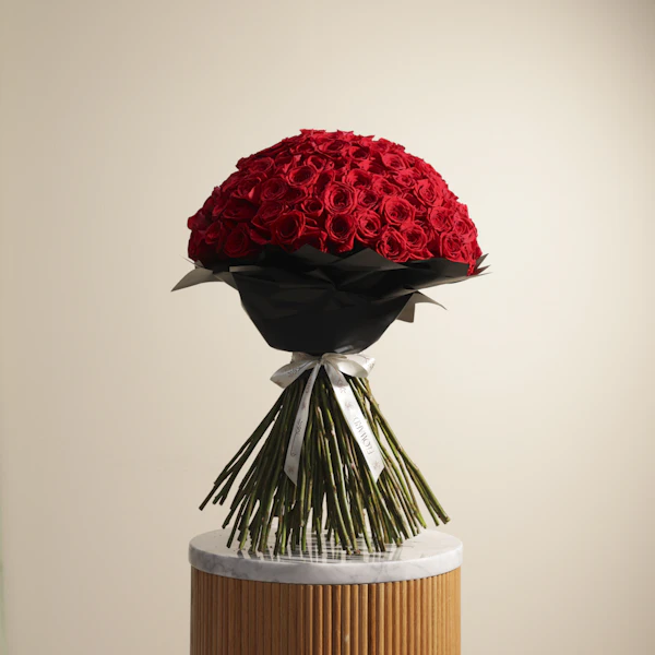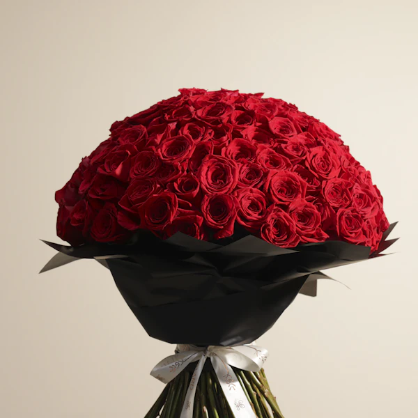 Discover the elegant bouquet of 150 red roses beautifully arranged in Black wrapping. This luxurious bouquet offers a stunning display of vibrant, rich blooms, perfect for any special occasion. Ideal for celebrating milestones, expressing love, or brightening someone's day, these roses are a symbol of grace and beauty. Order this exquisite arrangement today and enjoy premium luxury flower delivery, ensuring your gift makes a lasting impression.