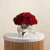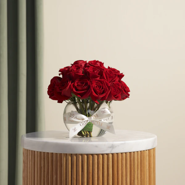 Elevate your space with our Luxury Roses Vase, showcasing stunning red roses in a chic glass fishbowl. This elegant arrangement adds a touch of sophistication and timeless beauty to any setting. Perfect for special occasions, anniversaries, or as a thoughtful gift, these pristine red roses exude elegance and grace. The unique glass fishbowl enhances the visual appeal, creating a modern yet classic look. Make any moment memorable with this exquisite floral display. Buy now and bring luxury and charm to your home or gift it to someone special.