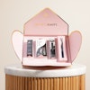 Presenting the You've Got Mail Charming Gaze Gift Bundle, a meticulously curated set featuring four essential items to enhance and define your eyes effortlessly. This charming bundle includes an eyelash applicator for precise lash placement, an ink eyeliner for bold definition, natural Esmeralda eyelashes crafted from fine fibers for an elegant look, and gentle eyelash adhesive ensuring secure and comfortable wear. Ideal for anyone passionate about eye makeup or looking to elevate their beauty routine, this bundle promises convenience and impeccable results, making it the perfect gift for achieving captivating eyes with ease.