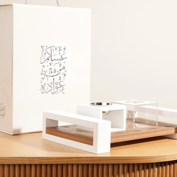 SKU FC15539The Almabakhir Bakhoor Burner Luxury Set embodies elegance with its exquisite blend of White Roses, Fuchsia Roses, and Cream Wrap. This opulent gift combines fragrant bakhoor burners with the delicate aroma of roses, creating a sensory experience that uplifts the ambiance of any space. The intricate design and premium materials elevate the aesthetic appeal, making it a luxurious addition to any home. Beyond its ornate appearance, the gift fosters relaxation and tranquility, providing moments of calm amidst the chaos of everyday life. Its impact lies in its ability to evoke feelings of serenity, indulgence, and appreciation for life's simple pleasures.