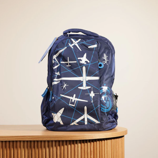 Gear up for school with the Blue Fighter Jet Backpack from Skybags, designed for boys who love adventure and style. Featuring a vibrant blue color and a dynamic fighter jet design, this backpack combines fun and functionality. It offers ample storage with multiple compartments to keep school essentials organized, while padded straps ensure comfort for all-day wear. Perfect for back-to-school season, this backpack makes a bold statement and is ideal for carrying books, supplies, and more. Get ready for a successful school year with the Skybags Blue Fighter Jet Backpack—where style meets practicality.
