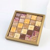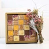 A collection of chocolates which include Crepe, Crepe pistachio, Kunafa, Gianduja, Rose & florentine