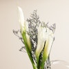 Elevate any space with our exquisite arrangement featuring the delicate beauty of White Calla and the vibrant allure of Purple Limonium, meticulously crafted in a Round Glass Vase. Perfect for any occasion, from birthdays to anniversaries, this stunning ensemble adds a touch of elegance and sophistication to any setting. Whether you're expressing gratitude, celebrating love, or simply adding a dash of charm to your décor, our arrangement effortlessly captures attention and admiration. With its timeless appeal and impeccable design, it's not just a gift—it's a gesture of refined taste and heartfelt sentiment. Order now to brighten someone's day with this captivating display.